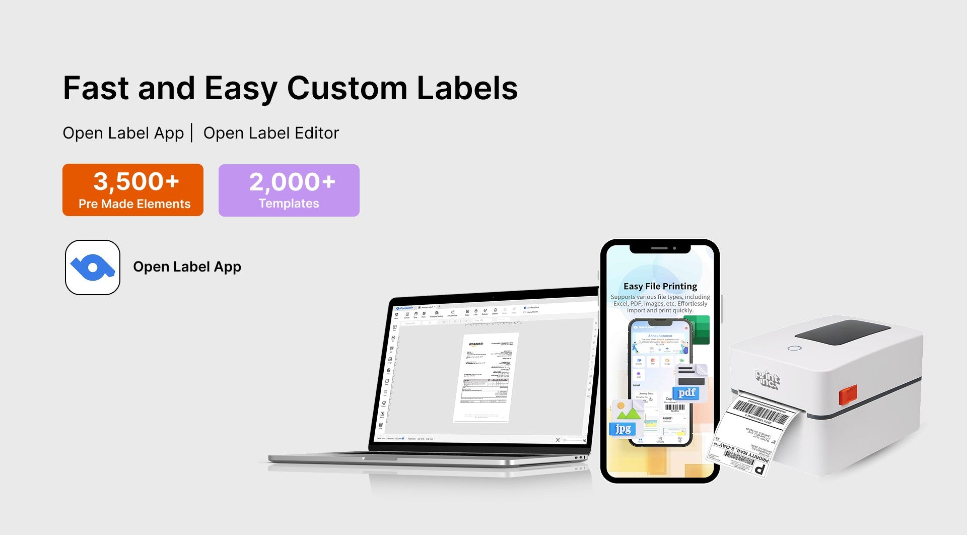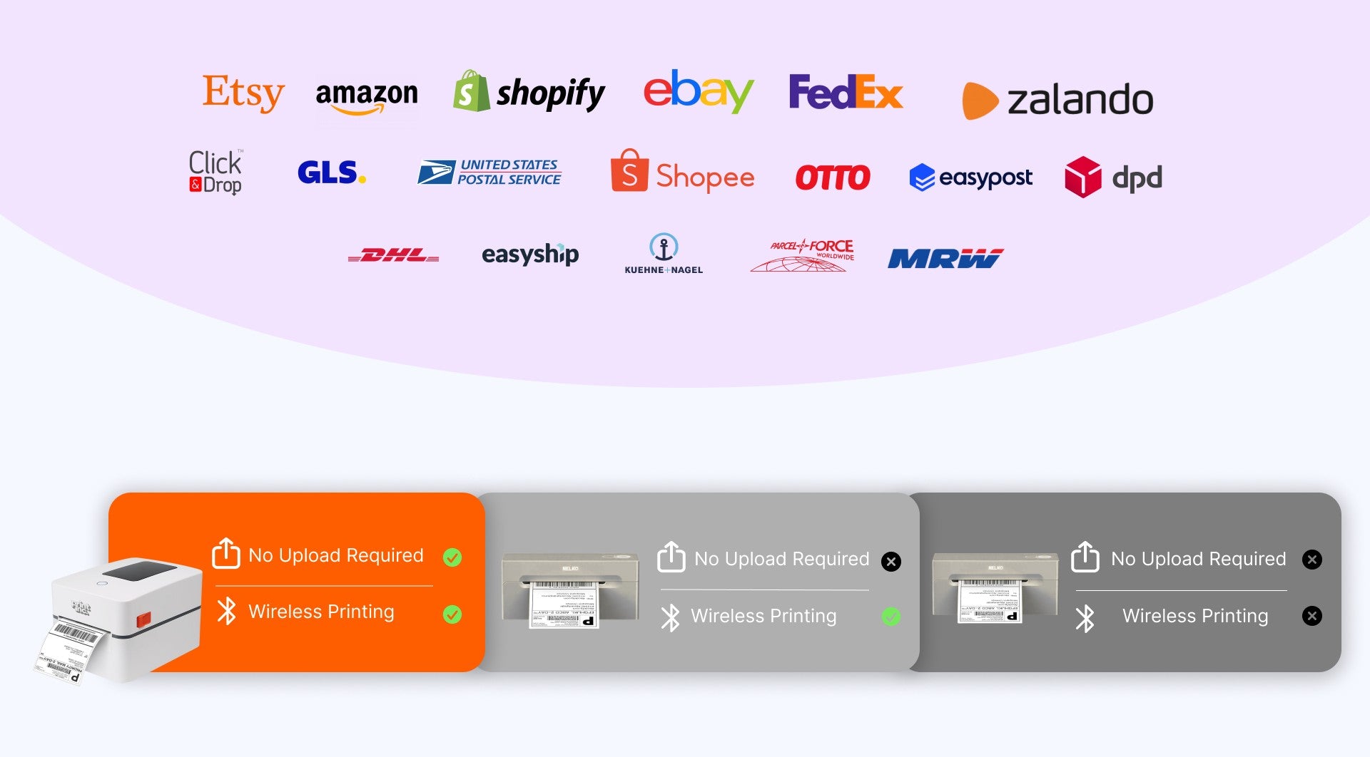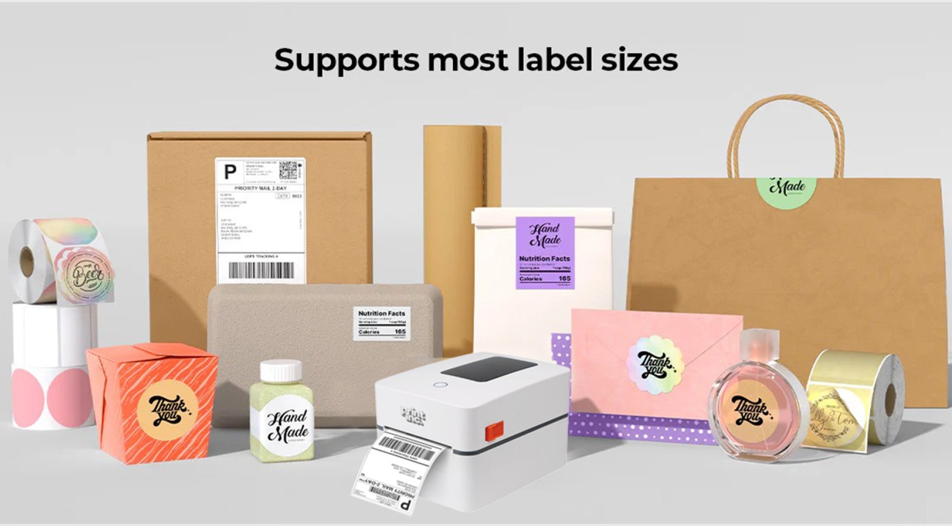 Label Types Supported 4x6 inch, 2x1 inch, custom sizes